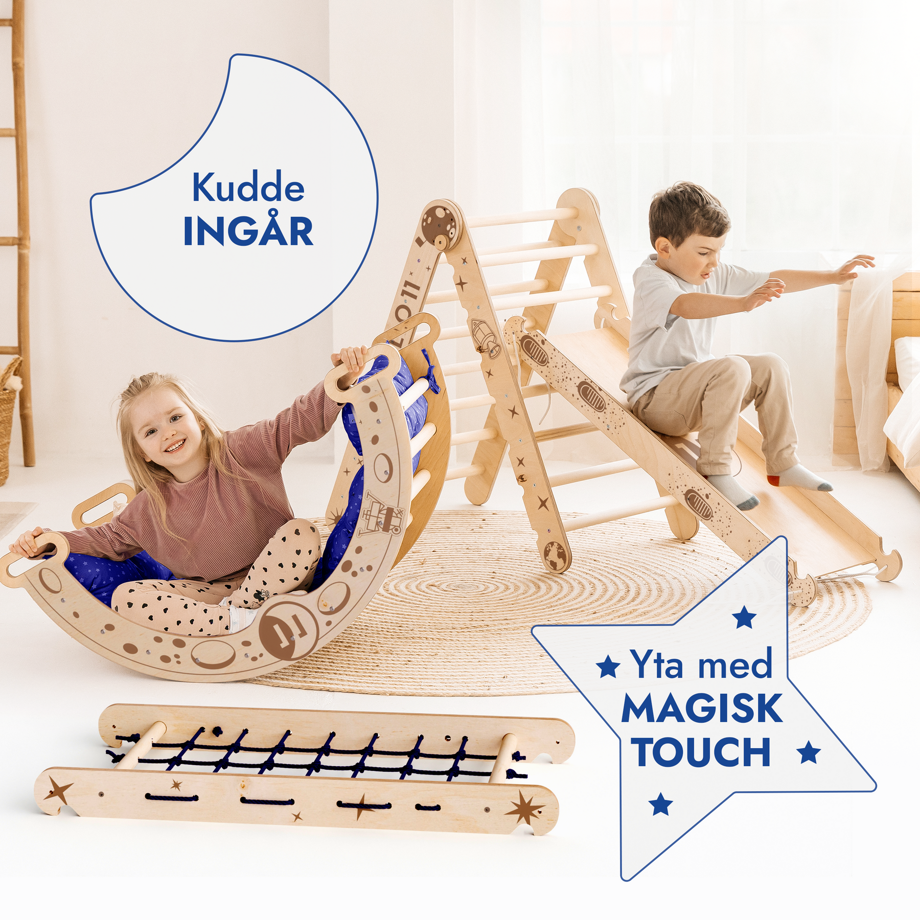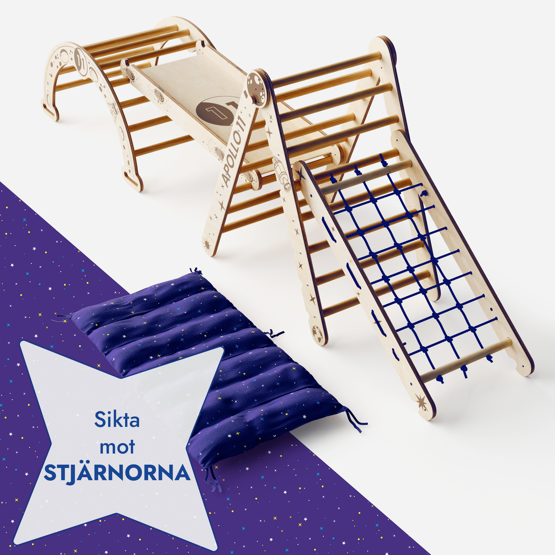 Klättersetet Apollo 5-i-1 är ditt barns personliga rymdbas, där vartenda ögonblick är ett uppdrag, varje lek en upptäckt och varje skratt en signal från rymdstationen. Utformad med omsorg, inspiration och en tro på stora små drömmar.