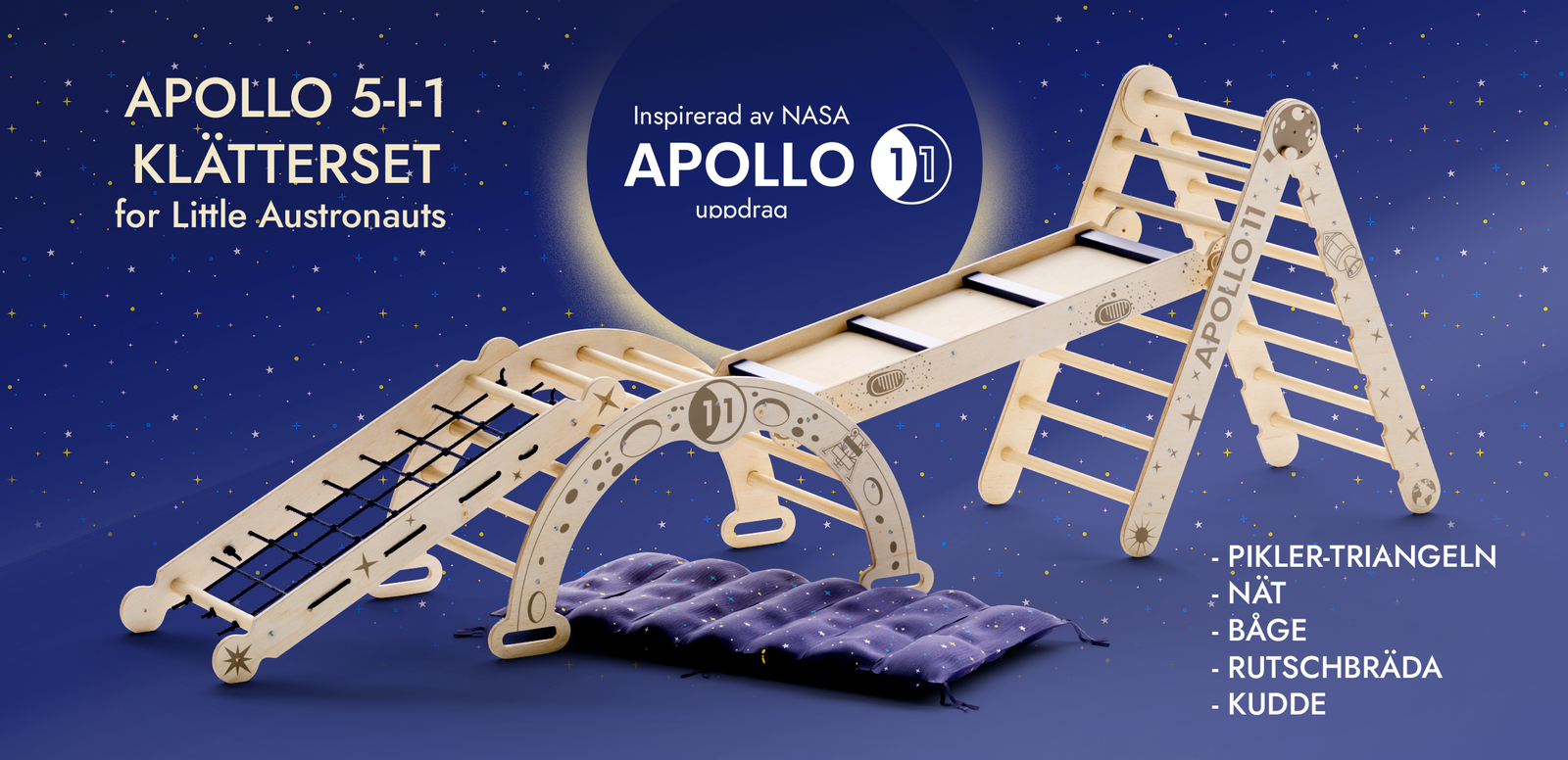 Apollo 5-i-1 är mer än bara ett lekredskap för barnen. Det är en avfyrningsramp till en fantasiresa ut i rymden, ett första steg mot större upptäckter och fysisk utveckling. Detta set har utformats för barn i åldrarna 1 till 7 år och främjar utvecklingen av muskelstyrka, motorik, balans, koordination och – viktigast av allt – självförtroende.
